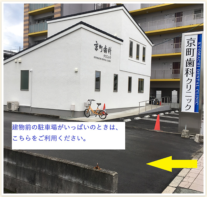前の駐車場が満車の際は、横の敷地に駐車ください。